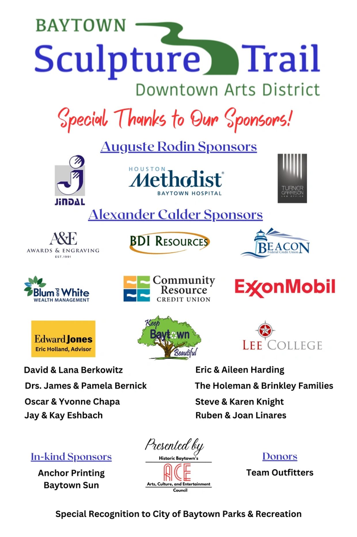 The Sculpture Trail is a visible highly visible display of your commitment to Baytown. The entire community has benefited from the beauty and charm the sculptures bring to the historic district.